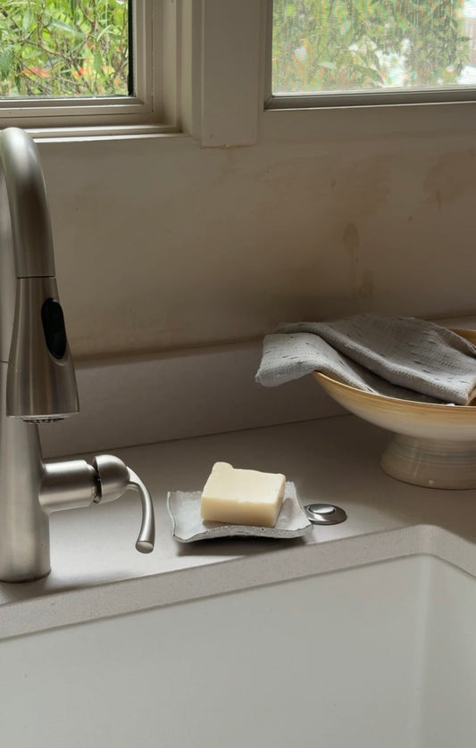Her home kitchen became overtaken with soaps, serums, and supplies, so Calli's husband renovated an empty cabin shell for her to move operations/production to. It was a big step and huge improvement!